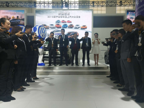 4月28日這天,清晨的陽關格外絢麗,車展也伴隨初生的旭日轟動開啟,物產汽貿職工各個精神抖擻,在分銷中心商務經理、青海地區(qū)3家上汽大眾經銷商總經理的牽頭下,車展正式開始