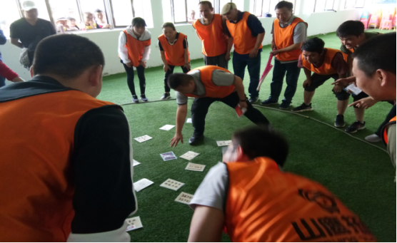 通過系列游戲導入拓展理念,同時建立團隊、選舉隊長、編隊歌、取隊名、定隊訓、繪隊旗、做團隊雕塑,做文化展示。隊員在精神整裝和團隊建立時充滿信心和激情的表現,體現出青海物產汽貿團隊已整裝待發、破冰起航。