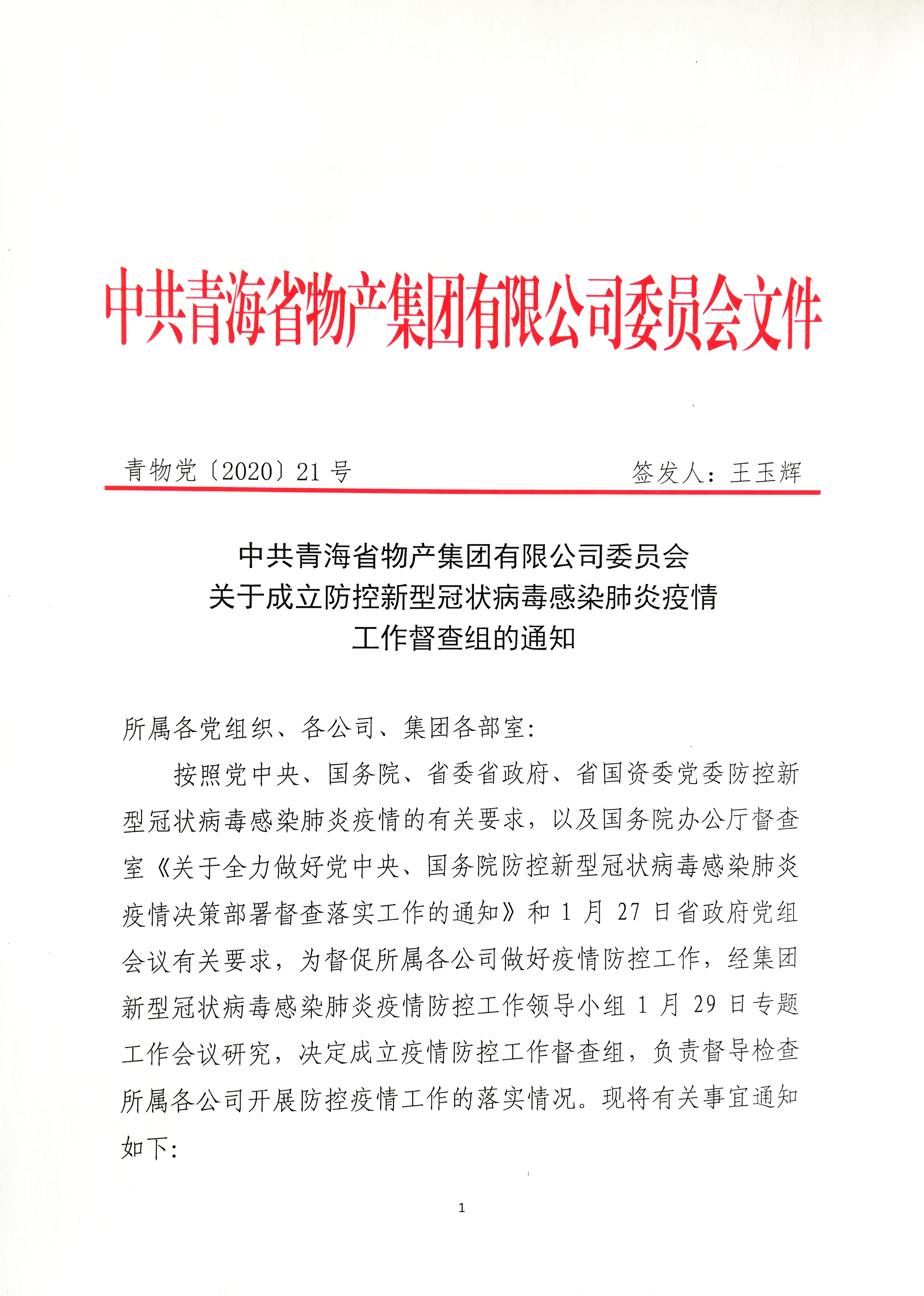 關于成立防控新型冠狀病毒感染肺炎疫情工作督查組的通知