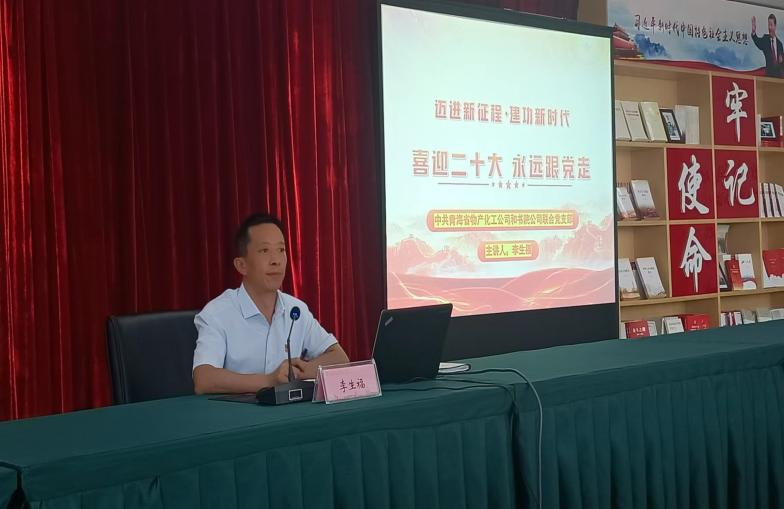 (化工公司、書院公司 訊 王思涵/文攝)為隆重慶祝中國共產黨成立101周年,重溫黨的光輝歷史,繼承和發揚黨的光榮傳統和優良作風,化工公司和書院公司聯合黨支部于6月30日在新時代·紅書坊召開“慶七一 學精神 講黨課 過生日 溫誓詞 喜迎二十大”主題黨日活動。聯合黨支部書記李生福同志主持本次會議,化工公司和書院公司領導班子、中層干部、全體黨員、青年團員、職工代表參加。