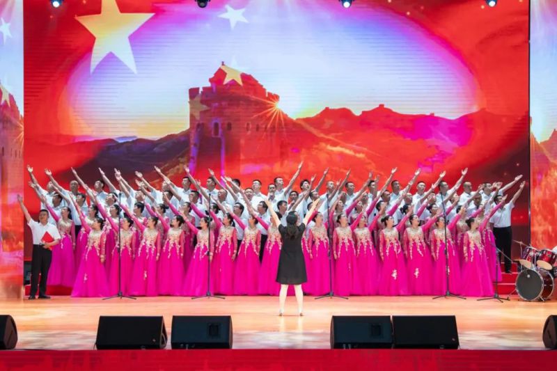 歷經2個多月的精心籌備與刻苦訓練,舞臺上的他們全情投入、共情共鳴,用優美嘹亮的歌聲唱響對祖國的贊美與熱愛,訴說那段波瀾壯闊的歷史。一首《領航》抒發了“感黨恩,聽黨話,跟黨走”熾熱的愛黨愛國情懷和奮進新征程的豪情壯志。《大中國》不僅唱出了對祖國的熱愛,也唱出了物產人“一家人、一條心、一起干”的團結精神,展現了新時代國有企業職工的昂揚精神。