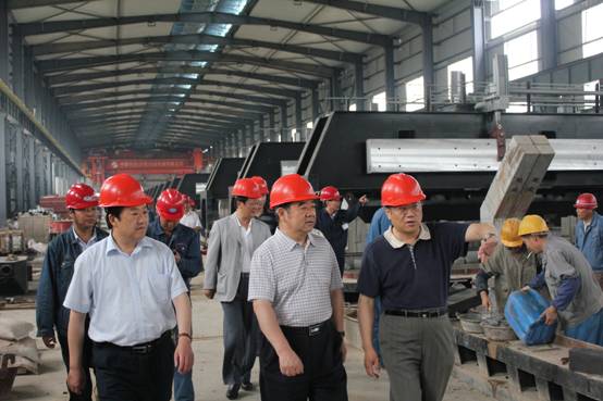 圖二:吳海昆主任一行實地來到5萬噸電解鋁產能置換技術升級改造及5萬噸特種鋁合金棒生產車間視察