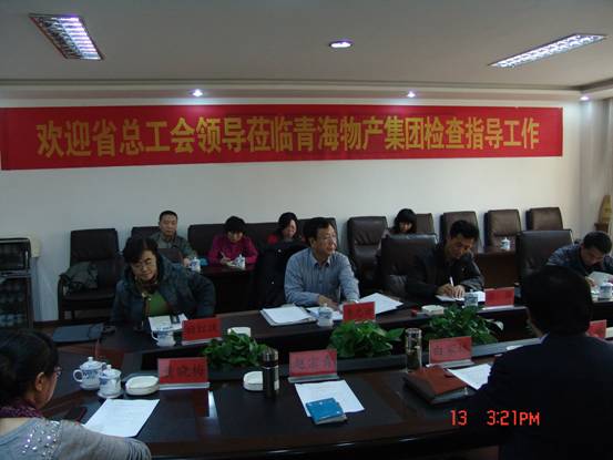 2012年12月13日下午,省總工會第六考核組組長、省總副巡視員兼法律保障部部長李忠云、考核組成員、省總機關黨委專職副書記呂華、考核組成員、省總組織部副調研員姬紅捷、考核組成員、省總經濟部魏紅巖一行蒞臨青海物產集團,對物產工會2012年度工作開展情況進行考核。