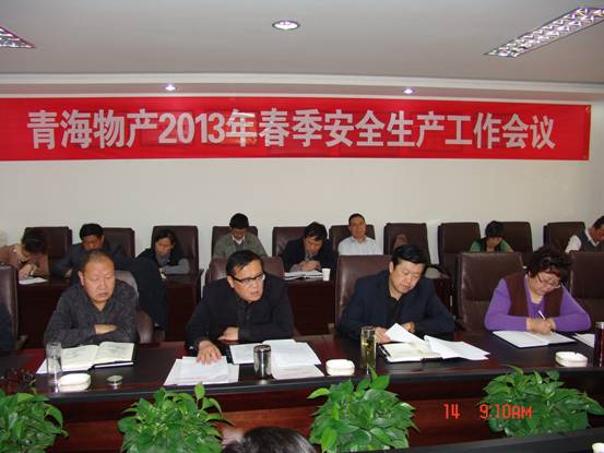 3月14日上午,省物產集團召開2013年春季安全生產工作會議。集團總經理王玉輝主持會議,黨委書記白家林、副總經理耿保平、紀委書記王仁芬,所屬各公司黨政主要領導、分管安全生產領導、安全生產部門負責人、集團總部各部負責人共40余人參加了會議。